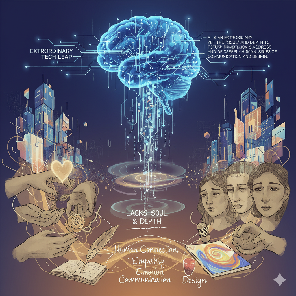 Nếu AI là một bước tiến phi thường của công nghệ, thì nó vẫn thiếu đi “linh hồn” và chiều sâu cảm xúc để thực sự chạm đến trái tim người dùng và giải quyết những vấn đề phức tạp, đậm tính nhân văn trong truyền thông và thiết kế. Công cụ có thể làm việc nhanh hơn, nhưng nó không thể cảm nhận hay chiến lược hóa một cách nhân văn.